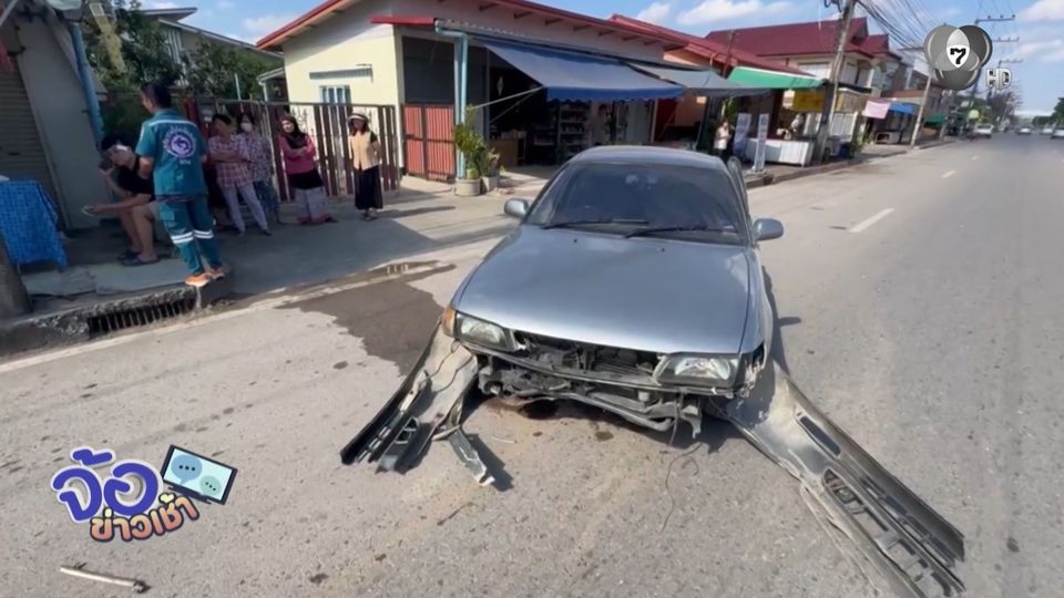 จ้อข่าวเช้า - หักหลบรถตัดหน้า พุ่งชนข้างทาง รถพังยับ