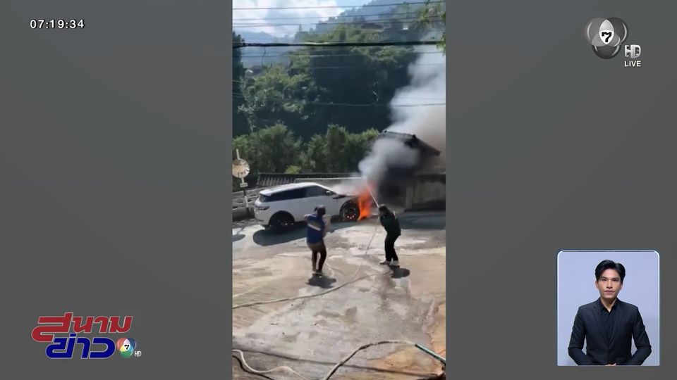 สนามข่าว 7 สี - เกิดเหตุเพลิงไหม้รถยนต์ SUV หรู ขณะกำลังขับขึ้นดอยแห่งหนึ่ง ซึ่งมีผู้ใช้โทรศัพท์มือถือบันทึกภาพเหตุการณ์เอาไว้ได้