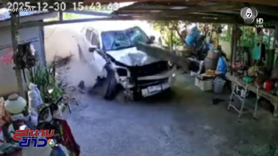 สนามข่าว 7 สี - อุบัติเหตุเกิดขึ้นได้ตลอดเวลา แม้กระทั่งตอนเราอยู่ในบ้าน จู่ ๆ รถกระบะมาจากไหนไม่รู้ พุ่งเข้าบ้าน ชนเสาหัก 2 ต้น