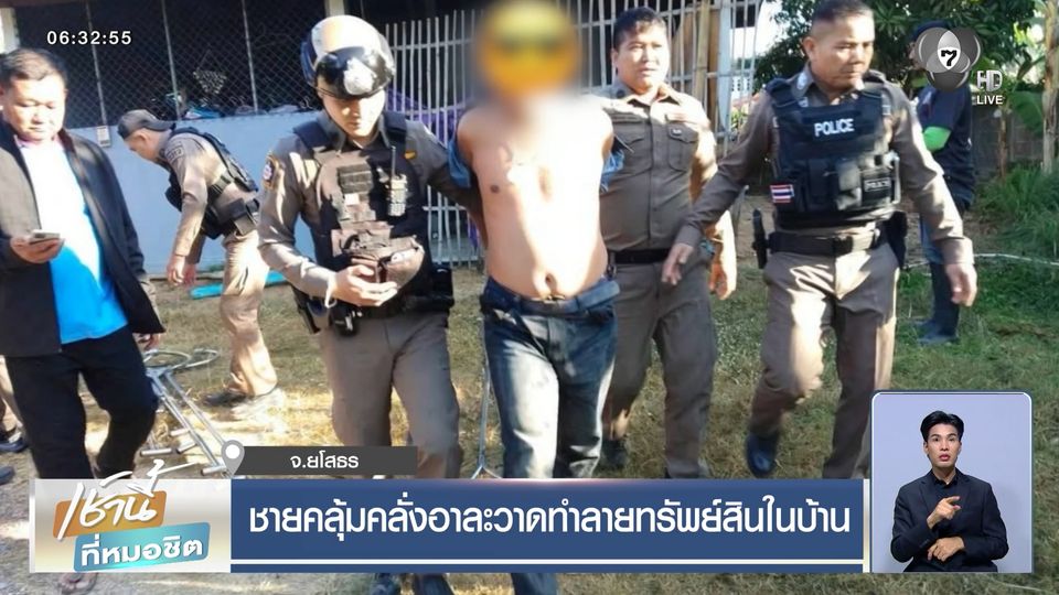 ชายคลุ้มคลั่งอาละวาดทำลายทรัพย์สินในบ้าน จ.ยโสธร