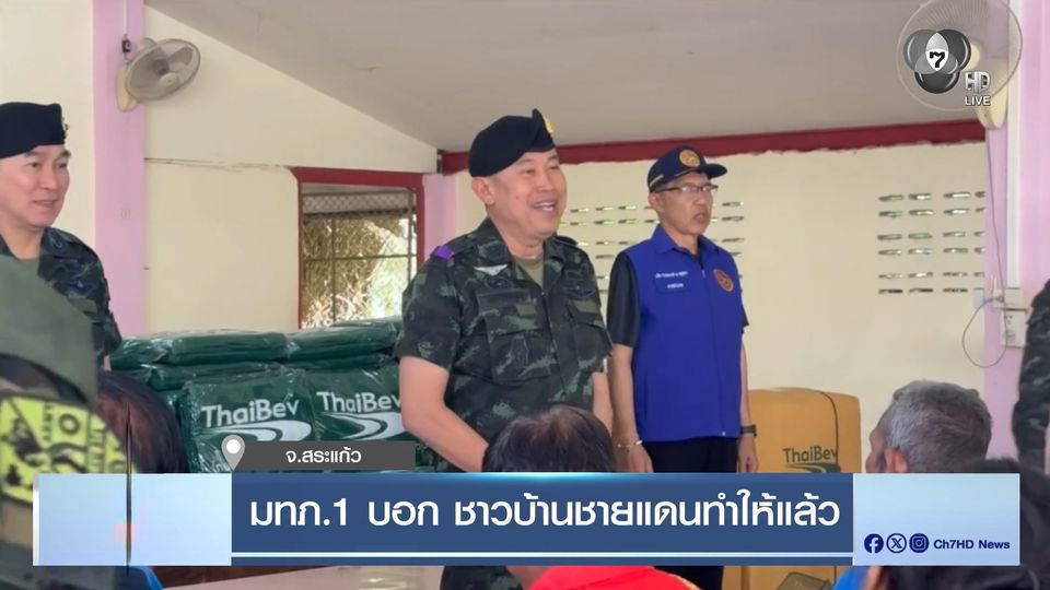 ข่าวภาคค่ำ - แม่ทัพภาคที่ 1 และทหาร ลงพื้นที่ชายแดน ด้านจังหวัดสระแก้ว บอกกับชาวบ้านว่า "ทำให้แล้วนะ" พร้อมรับประทานอาหารร่วมกัน