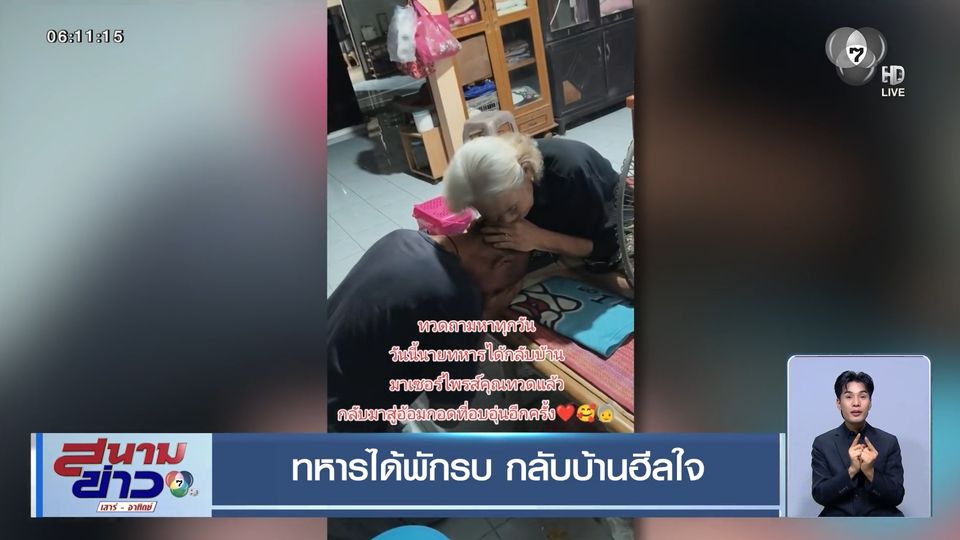 เป็นโมเมนต์ที่ใครเห็นก็ยิ้มตาม เมื่อพลทหารนายหนึ่งได้กลับมาเซอร์ไพรส์ครอบครัวช่วงเทศกาลปีใหม่ หลังออกไปปฏิบัติภารกิจปกป้องประเทศชาติตามแนวชายแดนไทย-กัมพูชา เมื่อมาถึงบ้าน พลทหารรีบเข้าไปสวมกอดคุณยายทันทีด้วยความคิดถึง ซึ่งในคลิปยังระบุอีกว่า คุณทวดถามหาหลานทุกวัน วันนี้หลานกลับมาเซอร์ไพรส์คุณทวดแล้ว กลับมาสู่อ้อมกอดที่อบอุ่นอีกครั้ง