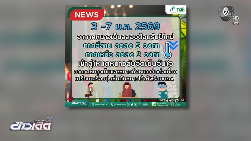 ข่าวเด็ด 7 สี - 3-7 มกราคมนี้ ภาคเหนือและภาคอีสาน อากาศจะหนาวเย็นลง เตือนประชาชนดูแลสุขภาพ ระวังอัคคีภัย