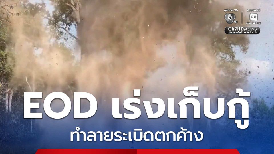 ข่าวภาคค่ำ - ที่อำเภอกันทรลักษ์ จังหวัดศรีสะเกษ เป็นอีกพื้นที่ ที่ถูกทหารกัมพูชา ยิงระเบิดเข้ามามา และพบว่ายังไม่ระเบิด ตกค้างในพื้นที่ไม่ต่ำกว่า 200 ลูก ล่าสุด เจ้าหน้าที่ ชุด EOE เร่งเข้าทำลาย