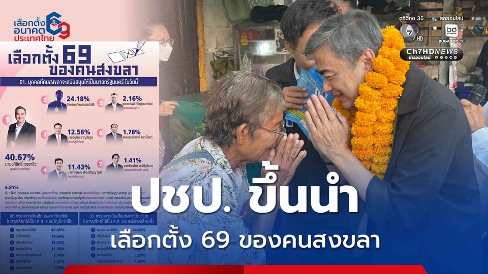 นิด้าโพล “เลือกตั้ง 69 ของคนสงขลา” ปชป.ขึ้นนำทั้ง สส.แบ่งเขต-สส.บัญชีรายชื่อ หนุน “อภิสิทธิ์” เป็นนายกฯ ทะลุ 40% อีก 24.18% บอกยังหาคนเหมาะสมไม่ได้