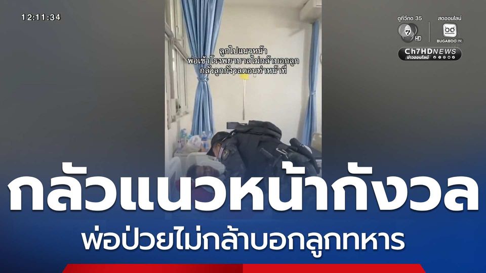 ห้องข่าวภาคเที่ยง สุดสัปดาห์ - หัวอกคนเป็นพ่อ ร่างกายป่วยจนต้องเข้าโรงพยาบาล แต่เลือกปิดข่าวเงียบไม่บอกลูกชาย ที่รับใช้ชาติอยู่ชายแดนไทย-กัมพูชา เมื่อลูกชายรู้ข่าวเลยรีบกลับมาหาทันที