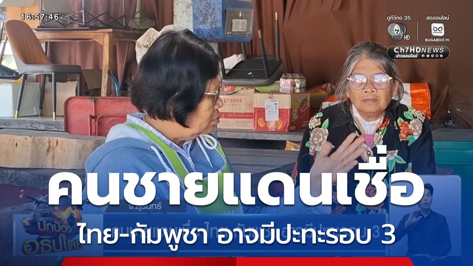 เจาะประเด็นข่าว 7HD - ปีใหม่ที่ผ่านมา สถานการณ์ชายแดนไทย-กัมพูชา สงบลงชั่วคราว แต่ชาวบ้านในจังหวัดสุรินทร์ ยังไม่ไว้วางใจ เพราะทางการกัมพูชา ไม่อนุญาตให้ชาวกัมพูชา กลับเข้าพื้นที่ แตกต่างจากไทย ทำให้ชาวบ้านเชื่อว่า อาจเกิดปะทะรอบที่ 3