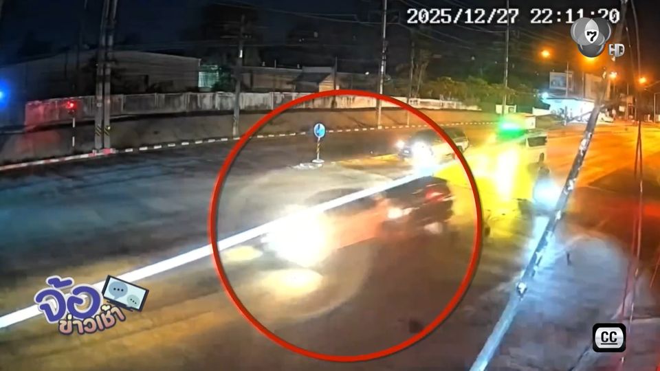 รถเก๋งพุ่งชนรถเก๋งที่จอดติดไฟแดง