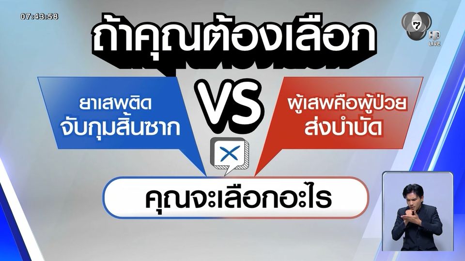 ไว้ใจได้กา เลือกตั้ง 2569 : ยาเสพติดจับกุมสิ้นซาก VS ผู้เสพคือผู้ป่วย ส่งบำบัด