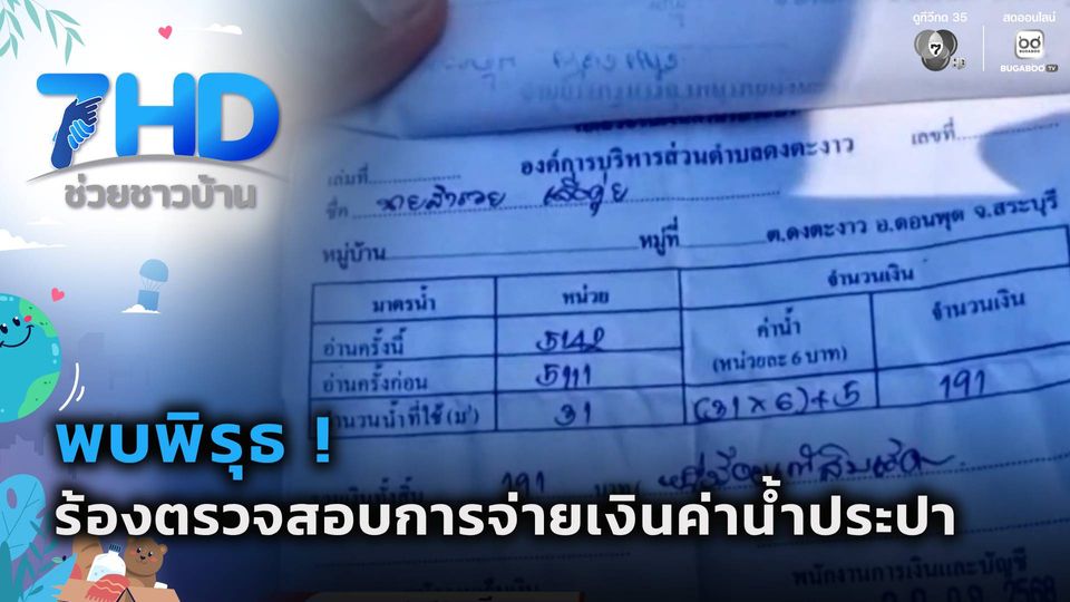 7 สีช่วยชาวบ้าน - ผู้ใหญ่บ้าน และชาวบ้าน 5 หมู่บ้าน ตำบลดงตะงาว อำเภอดอนพุด จังหวัดสระบุรี ร้องให้ตรวจสอบการจ่ายเงินค่าน้ำประปา หลังพบพิรุธนำชื่อ อบต.ดงตะงาว มาพิมพ์ในบิลค่าน้ำ