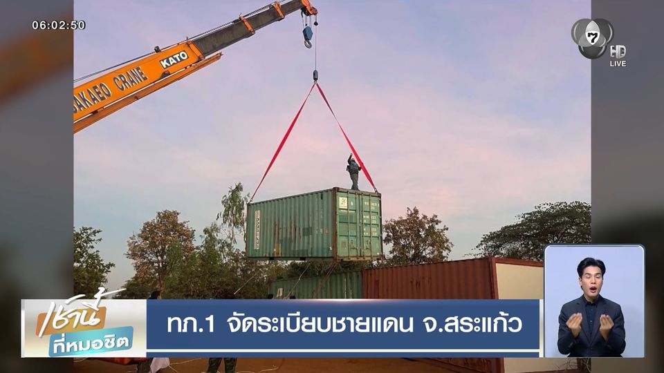 เช้านี้ที่หมอชิต - กองทัพภาคที่ 1 ย้ำการดำเนินการจัดระเบียบพื้นที่ชายแดน จังหวัดสระแก้ว รวมทั้งการเก็บกู้ทุ่นระเบิด วางตู้คอนเทนเนอร์ อยู่ในอธิปไตยของไทย
