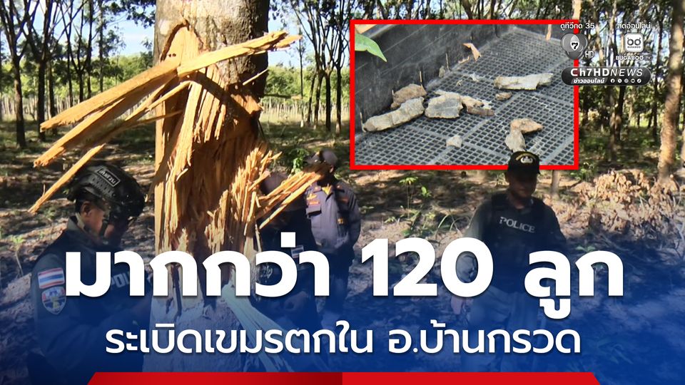 เจ้าหน้าที่เร่งเก็บกู้กระสุนปืนใหญ่ของเขมรจากการยิงปะทะ ที่ตกในพื้นที่การเกษตร อ.บ้านกรวด จ.บุรีรัมย์ มากกว่า 120 ลูก บางลูกยังไม่ทำงานซึ่งเสี่ยงอันตรายกับชาวเกษตรกรที่จะเข้าไปทำกิน