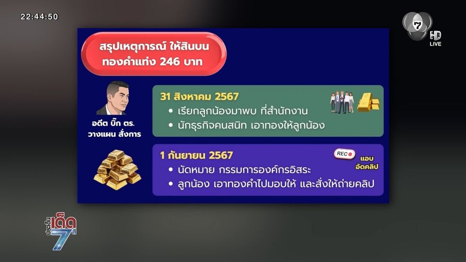 คลิปยาว 17 นาที สรุปเรื่องทั้งหมดที่เกิดขึ้น อะไรที่นำไปสู่การแจ้งความดำเนินคดีกับ "บิ๊กโจ๊ก" และผู้ที่เกี่ยวข้อง ที่สั่งการให้อดีตลูกน้องนำทองคำแท่ง หนัก 246 บาท ไปส่งมอบ และถ่ายคลิปเก็บไว้เป็นหลักฐาน เพื่อขอให้ช่วยคดีที่อยู่ในมือ ป.ป.ช. ให้พ้นผิด