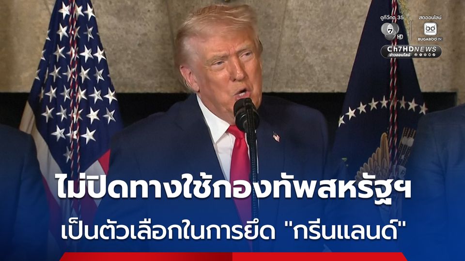 “โดนัล ทรัมป์” ไม่ตัดความเป็นไปได้ในการใช้กองทัพสหรัฐฯ เพื่อเป็นตัวเลือกในการยึด “กรีนแลนด์” ของเดนมาร์ก ด้านผู้นำประเทศมหาอำนาจยุโรปหลายชาติ ออกแถลงการณ์ร่วมย้ำว่า “กรีนแลนด์” เป็นของประชาชนกรีนแลนด์