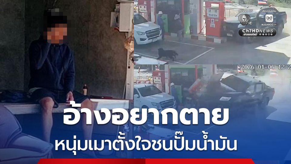 เสียหายหลายแสน หนุ่มเมาอ้างอยากตาย ขโมยรถกระบะญาติ ตั้งใจขับพุ่งชนตู้หัวจ่ายปั๊มน้ำมันพัง ชนเสร็จหยิบเหล้าในรถมานั่งซดต่อหน้าตาเฉย