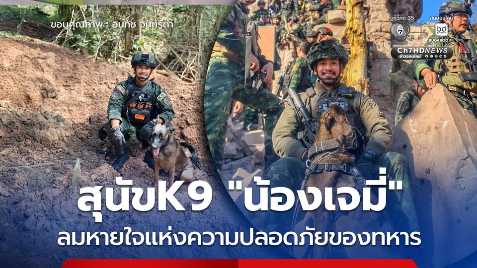 วันนี้ ( 7 ม.ค. 69 ) เพจ ทีมโฆษก กอ.รมน. โพสต์เรื่องราวสุดน่ารัก ซึ่งเจ้าของเฟซบุ๊กชื่อ "อินทัช จันทร์ดา" และเป็นครูฝึกของ “น้องเจมี่" สุนัข K9 ที่ทำหน้าที่ตรวจค้นทุ่นระเบิด และเป็นลมหายใจแห่งความปลอดภัย ณ ชายแดนไทย–กัมพูชา
