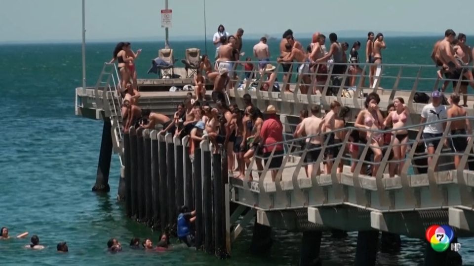 สภาพอากาศทางตอนใต้ของออสเตรเลียช่วงนี้ร้อนจัด ทำให้ผู้คนจำนวนมากพากันออกมาเล่นน้ำคลายร้อน