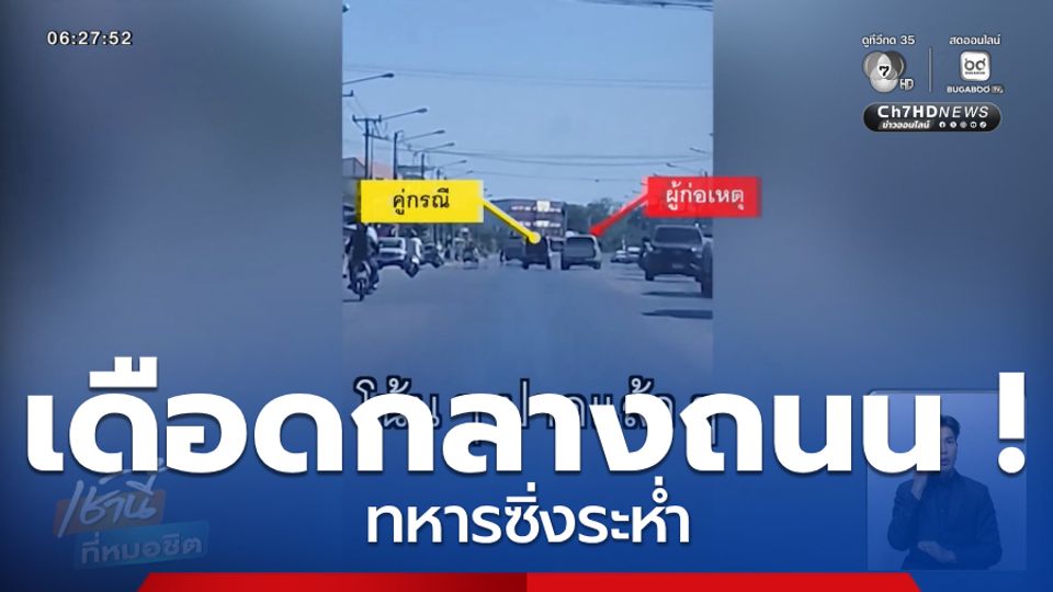 เช้านี้ที่หมอชิต - เดือดกลางถนน ! ชายสวมเครื่องแบบทหาร ซิ่งรถกระบะ ตามปาดหน้าหาเรื่องคู่กรณีกลางถนน ไม่สนเพื่อนร่วมทาง