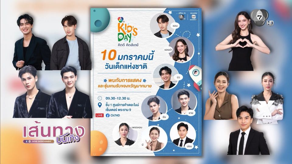 เส้นทางบันเทิง - น้อง ๆ หนู ๆ เตรียมตัวให้พร้อม วันเด็กปีนี้ มาร่วมสนุกกับกิจกรรมในงาน "7HD คิดดี คิดส์เดย์ เด็กดี มีคุณธรรม ตามรอยพระพันปีหลวง" พบกับทีมนักแสดงจากช่อง 7HD บิว ณัฐพล, ชอน ชวิศการ, แอนน่า กลึคส์, ซัน ก้องภพ และ ชาย สมชาย รวมทั้งผู้ประกาศข่าว บี กมลาสน์, เพชรหอม สุคนธ์เพชร และ ม่อน เพลงรบ ที่จะมามอบความสุขให้น้อง ๆ พร้อมมีซุ้มเกม และของขวัญมากมาย มาเจอกันได้เลย วันเสาร์ที่ 10 มกราคมนี้ ตั้งแต่เวลา 09.30-12.30 น. ที่ชั้น 1 ศูนย์การค้าเดอะไนน์ เซ็นเตอร์ พระราม 9 มาเจอกันได้เลย