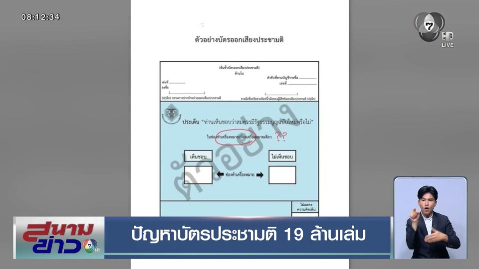 พร้อมระบุว่าข้อความที่ถูกต้องคือ "โปรดทำเครื่องหมายกากบาท X ในช่องทำเครื่องหมายเพียงเครื่องหมายเดียว" ตกไป 1 บรรทัด