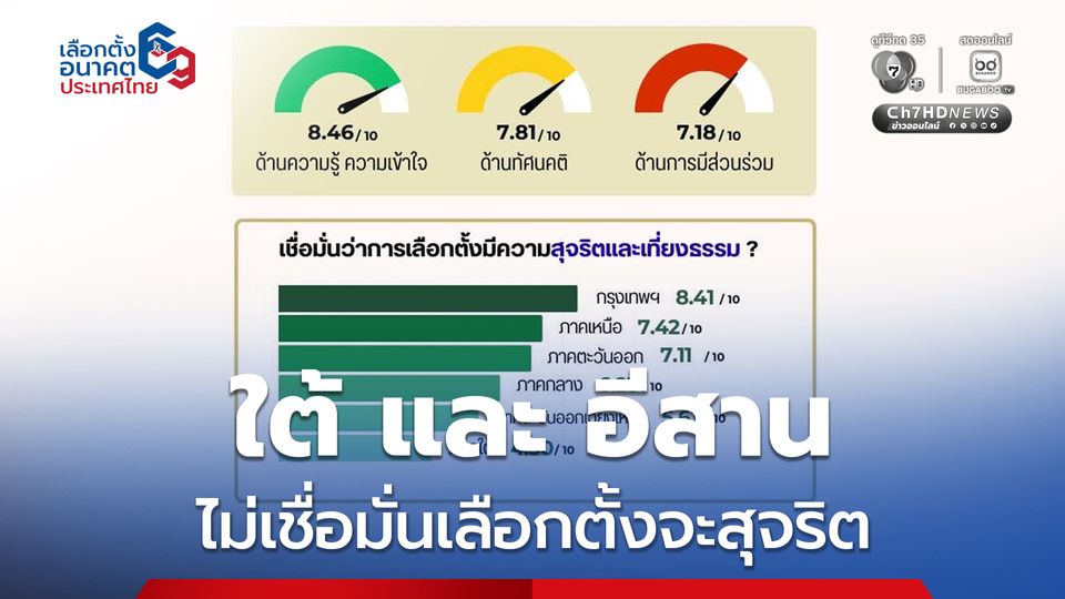 สะท้อนให้เห็นว่า กกต. ยังไม่สามารถซื้อใจคนในภูมิภาคได้เท่ากับคนเมืองหลวง โดยเฉพาะภาคใต้ ซึ่งแนวโน้มมองว่าการเลือกตั้งไม่โปร่งใสตั้งแต่แรก และความเชื่อมั่นไม่ได้ขึ้นกับ “ความพร้อมเลือกตั้ง” โดยตรง แต่ผูกโยงกับประสบการณ์และการรับรู้ต่อความเป็นธรรมของระบบ