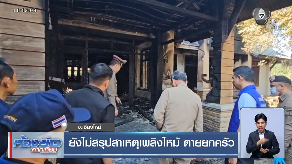 ห้องข่าวภาคเที่ยง - เหตุเพลิงไหม้สลดที่เชียงใหม่ ที่มีผู้เสียชีวิตถึง 5 คน ล่าสุดผู้ว่าฯ สั่งปิดพื้นที่ จนกว่าจะตรวจสอบเสร็จ ส่วนญาติเตรียมรับศพ ทำพิธีทางศาสนา