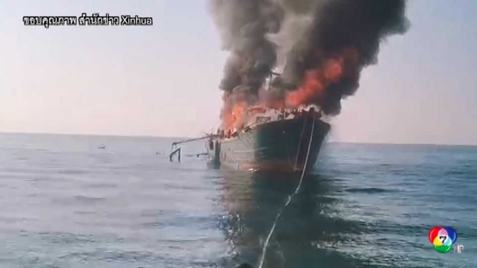 สำนักข่าวซินหัว (Xinhua) ของจีน เผยภาพเหตุการณ์เมื่อช่วงเย็นวันพุธที่ผ่านมา (7 ม.ค.) ตามเวลาท้องถิ่น ขณะเกิดเหตุไฟไหม้รุนแรงบนเรือประมงลำหนึ่งที่ลอยอยู่กลางน่านน้ำใกล้เมืองเป่ยไห่ เขตปกครองตนเองกว่างซีจ้วง ทางตอนใต้ของจีน