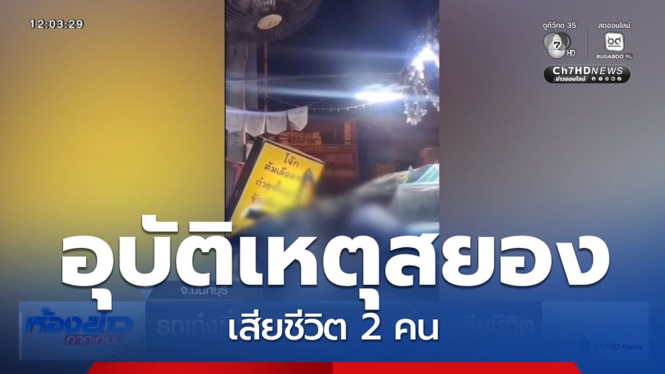 ห้องข่าวภาคเที่ยง สุดสัปดาห์ - อุบัติเหตุสยองเมื่อกลางดึก มีรถเก๋งซิ่งมาด้วยความเร็ว เสียหลักชนรถที่จอดข้างทางจนพังยับ ชาย 2 คนที่อยู่ในรถเก๋ง เสียชีวิตในที่เกิดเหตุ