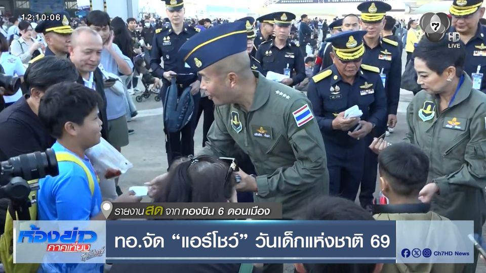 ห้องข่าวภาคเที่ยง สุดสัปดาห์ - เด็กและผู้ปกครองตื่นตา กองทัพอากาศจัดเต็ม แอร์โชว์ ใช้เครื่องบิน F-16 และ กริพเพน แสดงโชว์บินผาดแผลง งานวันเด็กแห่งชาติ 2569 ติดตามรางานสดจากน้องก้อง เกียรติชัย บุญราโส