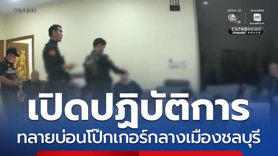 สนามข่าวเสาร์-อาทิตย์ - สตม. เปิดปฏิบัติการกลางดึก ทลายบ่อนโป๊กเกอร์กลางเมืองชลบุรี รวบนักพนักหลายสัญชาติกว่าสิบคน