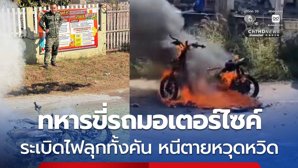 ระทึก ทหารหนุ่มขี่รถ จยย. ไปเลือกตั้ง ส.อบต. จู่ ๆ รถเกิดระเบิดไฟลุกท่วม เจ้าตัวทิ้งรุหนีตายรอดหวุดหวิด รถถูกเผาวอดทั้งคัน
