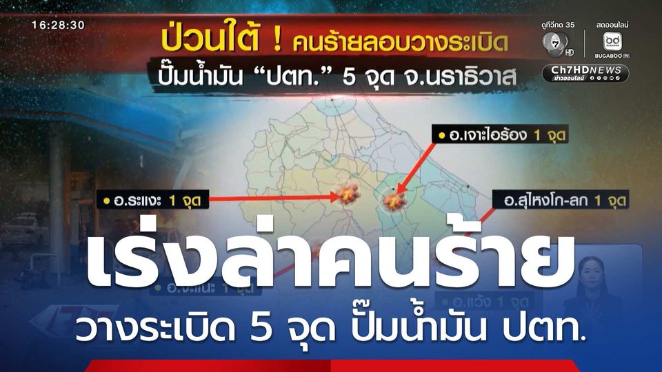 เร่งล่าคนร้ายวางระเบิด 5 จุด ปั๊มน้ำมัน ปตท. จ.นราธิวาส