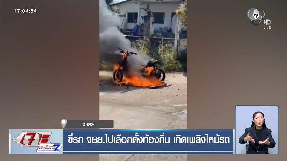 ขี่รถ จยย.ไปเลือกตั้งท้องถิ่น เกิดเพลิงไหม้รถ จ.เลย