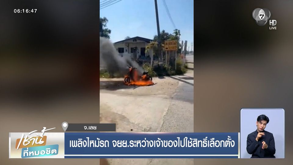เช้านี้ที่หมอชิต - ทหารขี่รถจักรยานยนต์ เพื่อไปใช้สิทธิ์ลงคะแนนเลือกตั้ง อบต. แต่ระหว่างทางรถจักรยานยนต์เกิดเพลิงลุกไหม้เสียหายทั้งคัน