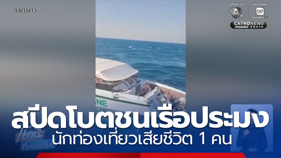 เช้านี้ที่หมอชิต - เกิดอบุติเหตุเรือสปีดโบตนักท่องเที่ยว ชนกับเรือประมง ใกล้เกาะพีพี จังหวัดกระบี่ มีผู้เสียชีวิต 1 ราย และบาดเจ็บกว่า 20 คน