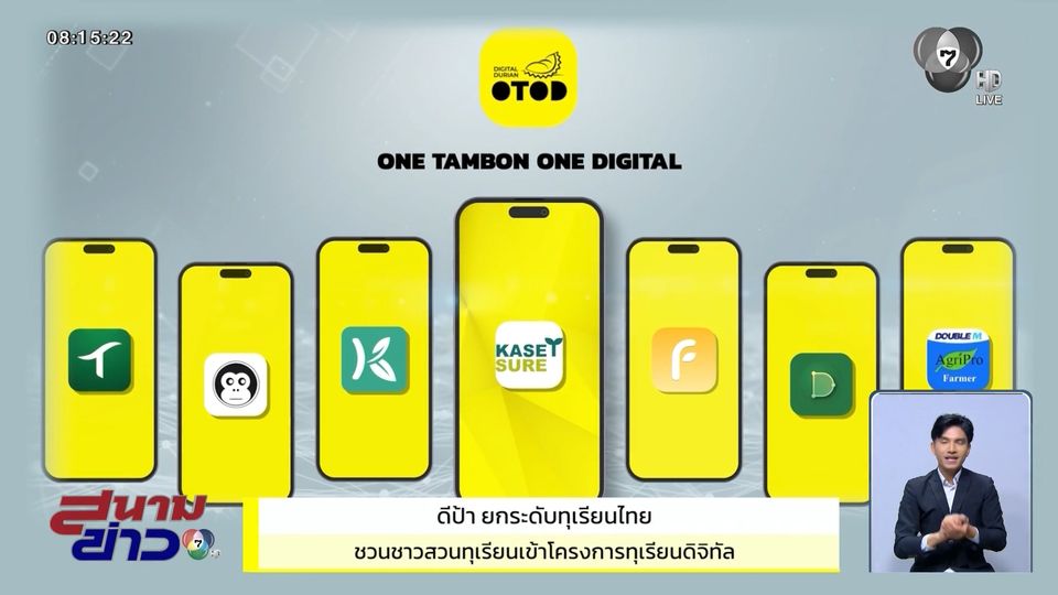 สนามข่าว 7 สี - สำนักงานส่งเสริมเศรษฐกิจดิจิทัล หรือ ดีป้า เดินหน้ายกระดับทุเรียนไทย ด้วยเทคโนโลยีดิจิทัลเพิ่มมูลค่าทุเรียน เปิดรับสมัครชาวสวนทุเรียนทั่วประเทศ เข้าร่วมโครงการทุเรียนดิจิทัล