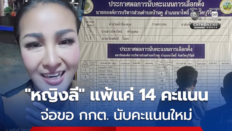 หญิงลี เตรียมยื่น กกต. ขอนับคะแนนใหม่ หลังแพ้เลือกตั้ง นายก อบต.บ้านคู เพียง 14 คะแนน เพื่อความสบายใจของทุกฝ่าย