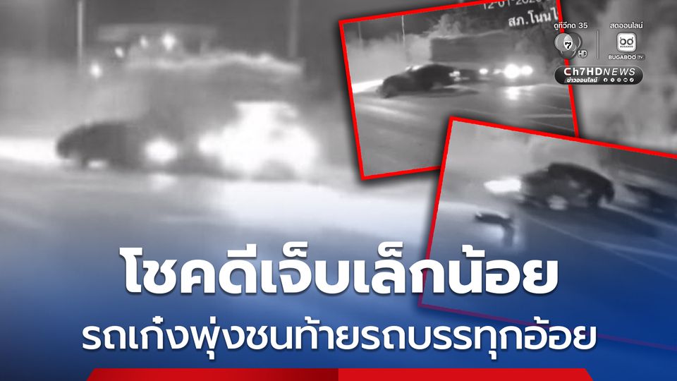 อุบัติเหตุระทึกเช้ามืด กล้องวงจรปิดบันทึกนาทีชีวิต รถเก๋งขับมาเร็ว พุ่งชนท้ายรถบรรทุกอ้อยอย่างจัง โชคดีบาดเจ็บเล็กน้อย