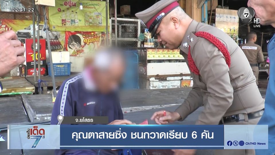ประเด็นเด็ด 7 สี - จังหวัดยโสธร คุณตาวัย 86 ปี สายซิ่ง เหยียบมิดพุ่งชนรถยนต์และรถจักรยานยนต์คาตา กวาดเรียบ 6 คันรวด แม่ค้าบาดเจ็บระนาว