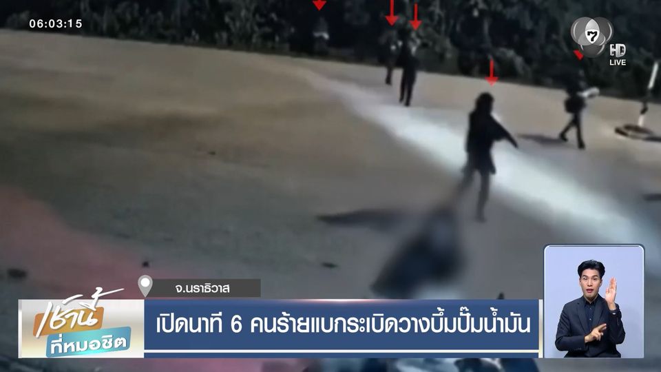 เช้านี้ที่หมอชิต - เจ้าหน้าที่เร่งหาเบาะแส ตามตัวกลุ่มคนร้ายวางระเบิดและเผาปั๊มน้ำมัน 11 จุด ในพื้นที่ 3 จังหวัดชายแดนภาคใต้ ที่จังหวัดนราธิวาส กล้องวงจรปิดจับภาพกลุ่มคนร้าย นำระเบิดเข้ามาวางอย่างอุกอาจ