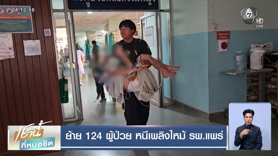 เช้านี้ที่หมอชิต - นี่ไม่ใช่การซ้อมแผนอพยพ แต่เกิดขึ้นจริงกับเหตุเพลิงไหม้ชั้น 2 ตึกผู้ป่วยโรงพยาบาลแพร่ ต้องเร่งย้ายผู้ป่วย 124 เตียงกันอย่างโกลาหล