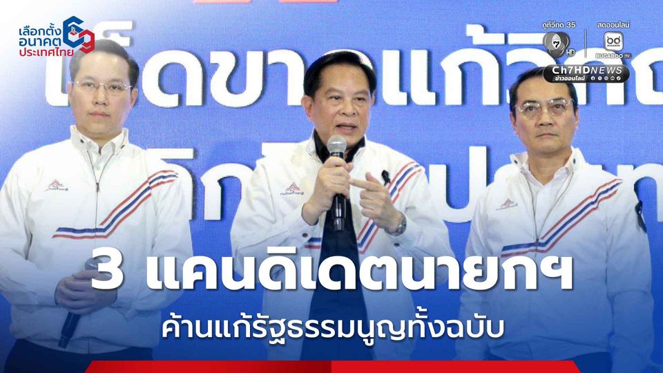 3 แคนดิเดตนายกฯ พรรครวมไทยสร้างชาติ ค้านแก้รัฐธรรมนูญทั้งฉบับ เปรียบ "เซ็นเช็คเปล่า" เสี่ยงแอบฟอกขาวนักการเมืองชั่ว