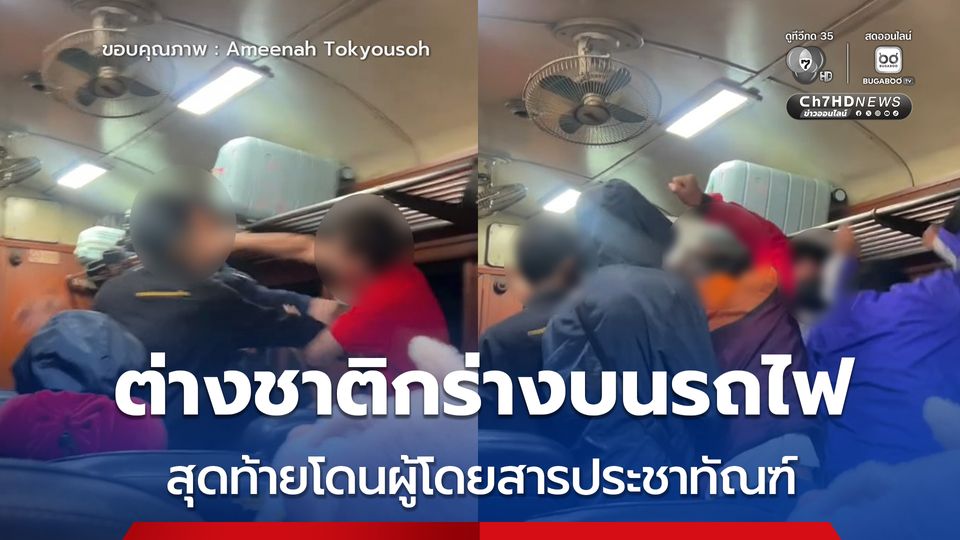 ชายชาวต่างชาติทะเลาะกับเมียชาวไทย แล้วทำพฤติกรรมกร่างบนรถไฟ เจ้าหน้าที่เข้าไปเจรจาด้วยท่าทีสุภาพก็ไม่ฟัง ด่าทอแถมชกหน้าเจ้าหน้าที่ด้วย สุดท้ายเลยโดนผู้โดยสารบนขบวนรุมประชาทัณฑ์