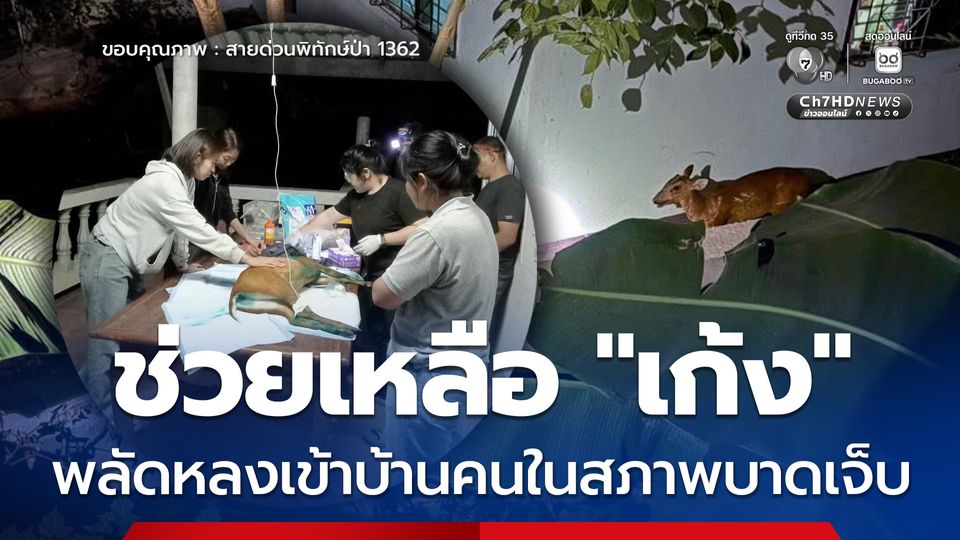 เจ้าหน้าที่เขตรักษาพันธุ์สัตว์ป่าสาละวิน ช่วยเหลือ "เก้ง" พลัดหลงเข้าบ้านคนในสภาพได้รับบาดเจ็บ