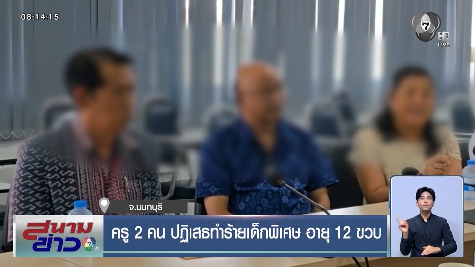 สนามข่าว 7 สี - ครู 2 คน ที่สงสัยว่าจะทำร้ายลูกศิษย์ อายุ 12 ขวบ ซึ่งเป็นเด็กพิเศษ ยังไม่ยอมรับว่าใช้ไม้บรรทัดเหล็กกรีดขา และจับเด็กขังในตู้เหล็ก แต่ต้นสังกัดสั่งให้พักงานก่อน