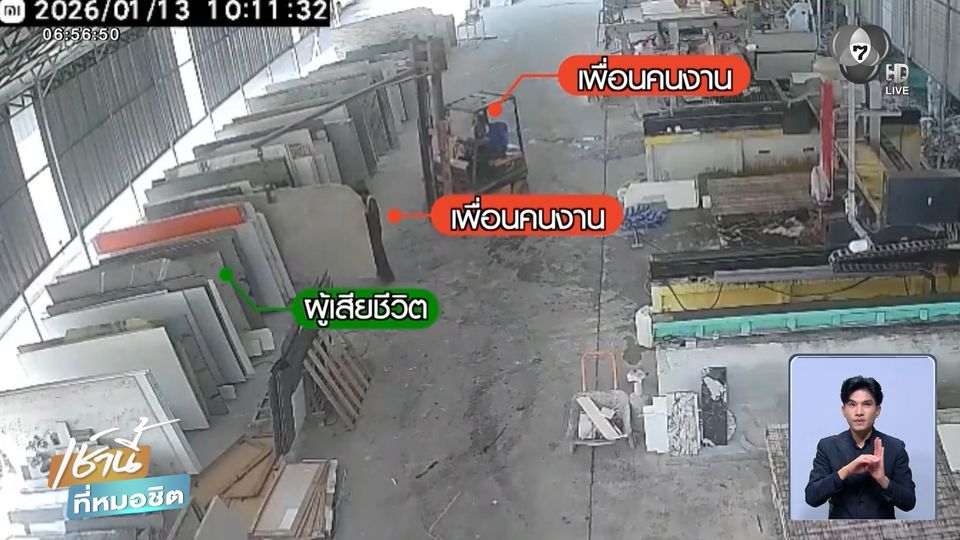 เช้านี้ที่หมอชิต - เกิดเหตุสลด หินอ่อนล้มทับคนงานเสียชีวิตที่ย่านร่มเกล้า ตำรวจสอบสวนหาสาเหตุ กล้องวงจรปิดจับภาพนาทีระทึก
