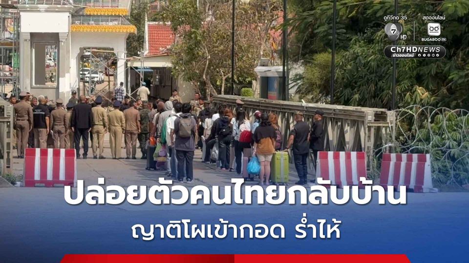 วันนี้ (14 ม.ค. 69) หลังจากที่รอเวลามาตั้งแต่ช่วงเช้า จนกระทั่งเวลา 12:20 น. ที่ผ่านมา รถบัสของฝั่งกัมพูชาขับเข้ามาถึงบริเวณหน้าด่าน ของฝั่งกัมพูชา คนไทยทยอยเดินลงจากรถ และเข้ามารวมตัวบริเวณ ตม. ของฝั่งกัมพูชา จากนั้นมีการแจกข้าวกล่องให้คนไทยรับประทาน ต่อมาเวลา 13:42 น. คนไทยทั้งหมด 28 คน เดินทางกลับเข้ามาพร้อมกับเจ้าหน้าที่ของฝ่ายไทยที่เดินไปรับก่อนหน้านี้ ทันทีที่ผ่านประตู ของด่านถาวรบ้านผักกาด ทางญาติของน้องไอน้ำ เด็กหนุ่มชาวลำปาง พ่อโผเข้าไปกอดด้วยความเป็นห่วง ถามสารทุกข์สุกดิบทั้งน้ำตา