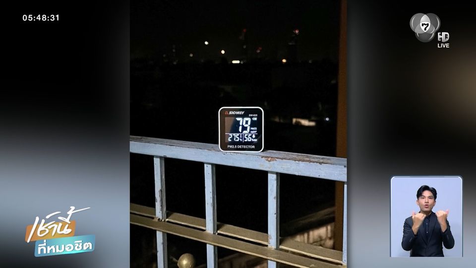 คลิปที่ถ่ายสภาพอากาศตอนกลางคืนที่ระเบียงห้อง ที่กรุงเทพฯ ก่อนจะค่อย ๆ ถ่ายลงมาที่เครื่องวัดค่าฝุ่น PM2.5 ปรากฎว่า สูงถึง 72 มคก./ลบ.ม. เจ้าของคลิปนำมาโพสต์ ระบุว่า เรื่องสยองตอนเที่ยงคืน กรุงเทพฯอากาศเย็นสบาย แต่ว่าน้องฝุ่น PM2.5 ยังอยู่