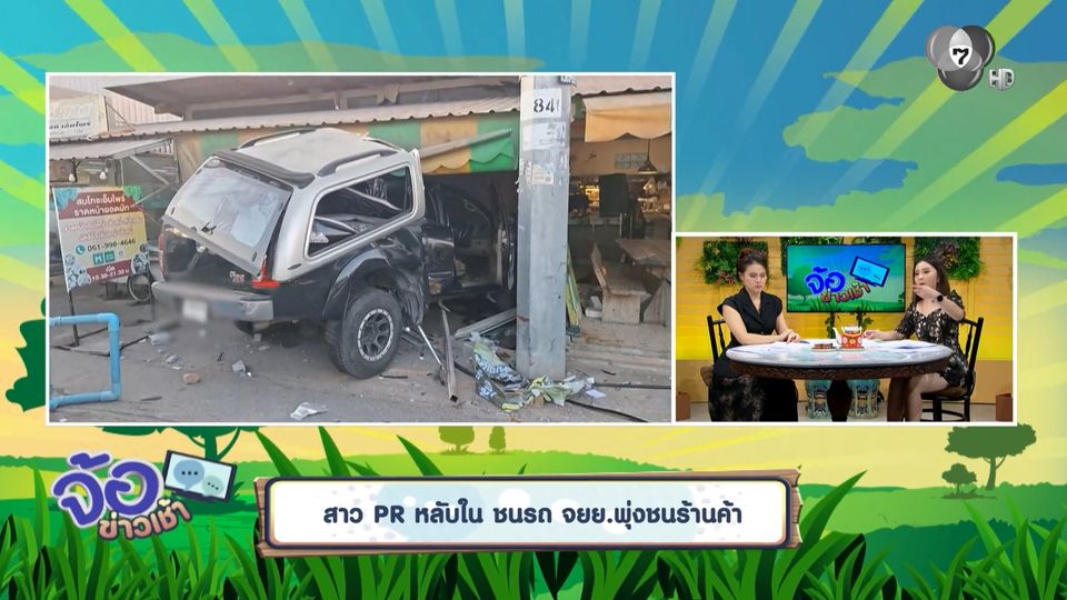 จ้อข่าวเช้า - สาว PR หลับใน ชนรถ จยย.พุ่งชนร้านค้า