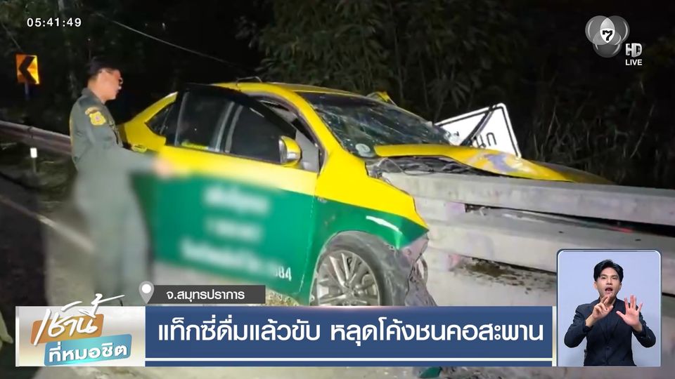 เช้านี้ที่หมอชิต - เกิดอุบัติเหตุรถแท็กซี่หลุดโค้งชนสะพาน มีผู้บาดเจ็บ 3 คน แต่ตอนเจ้าหน้าที่เข้าไปตรวจสอบพบว่าอาการคนขับรถแท็กซี่ไม่ปกติ